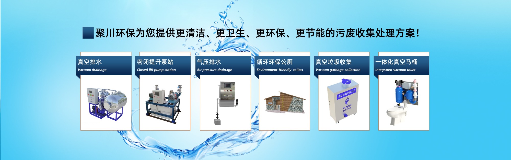 聚川環保成立于2006年8月,總部位于中國浙江杭州,國內新三板上市企業,國家高新技術企業。努力推進真空排水系統在中國的發展和應用,聚川致力于創新型排水設備和系統研發與市場推廣,主要產品有室外真空排水系統、室內真空排水系統、大型建筑真空收集系統、高效節水微型水循環環保廁所系統、真空馬桶、凸輪式密閉泵站系統、低液位氣壓排水系統、負壓垃圾收集系統,城市污水處理裝置等。